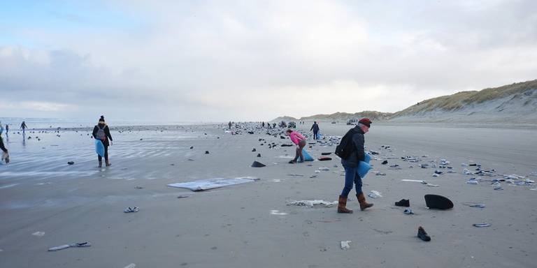 Maar het is vooral troep. Toen ik vrijdag op het Amelandse strand liep, lag er langs de hoogwaterlijn een onafzienbare streep plastic. Verpakkingsmateriaal, tienduizenden zakken en vellen wit plastic. En heel veel stukken van houten lijsten of sponningen. Hier en daar een stoelzitting, maar de grote stukken waren een dag eerder al geborgen. Onder een gure hemel werd met man en macht geruimd, door eilanders en toeristen, met zwaar landbouwmaterieel, met een bonte stoet aan terreinwagens, maar vooral met blote handen en met vastberadenheid: het moet hier schoon! Je zag de kracht van een kleine samenleving waar iedereen aanhaakt als er een klus te klaren is.
